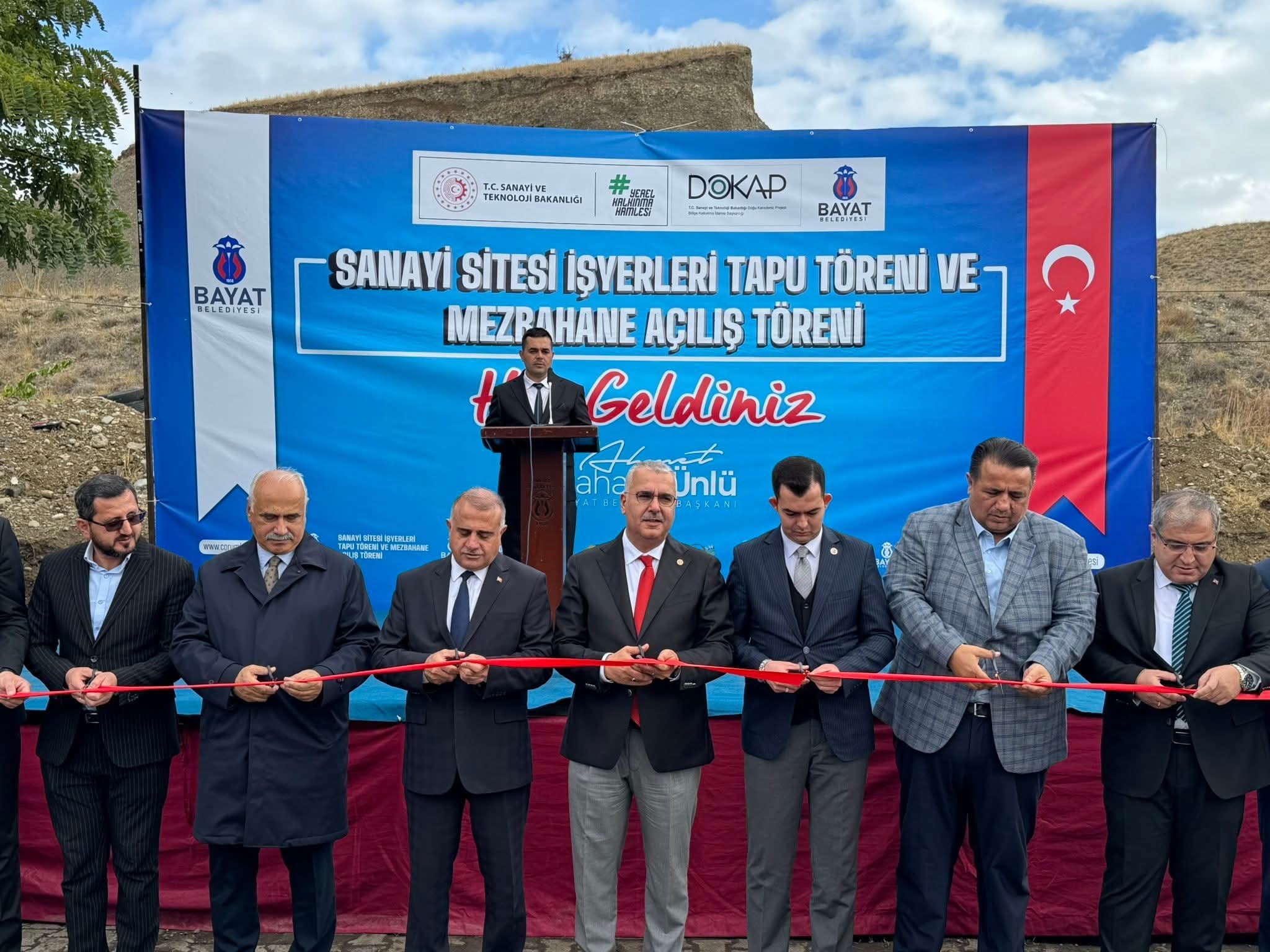 Sanayi Sitesi İşyerleri Tapu Teslim Töreni ve Mezbahane Açılış Törenimizi, Çorum Milletvekillerimiz Sayın Av. Yusuf Ahlatcı ve Sayın Av. Oğuzhan Kaya, AK Parti İl Başkanımız Sayın Yakup Alar, Bayat Kaymakamımız Sayın Kerem Yüce, Belediye Başkanımız Sayın Ahmet Bahadır Ünlü, İskilip Belediye Başkanımız Sayın İsmail Çizikci, AK Parti Bayat İlçe Başkanımız Sayın İbrahim Kaymaz, protokol üyeleri, esnaflarımız ve kıymetli vatandaşlarımızın katılımıyla büyük bir coşkuyla gerçekleştirdik.