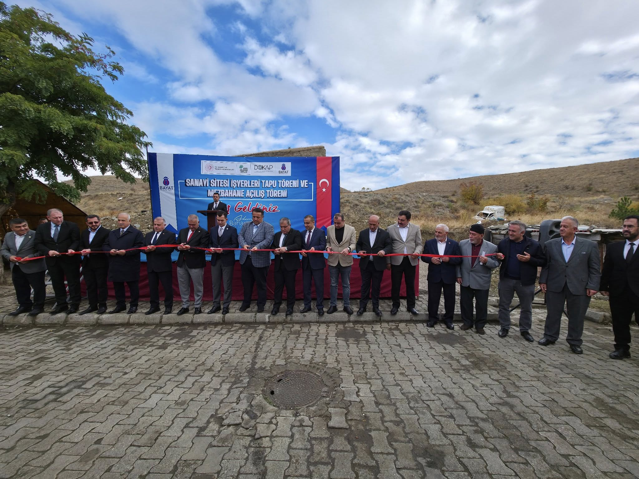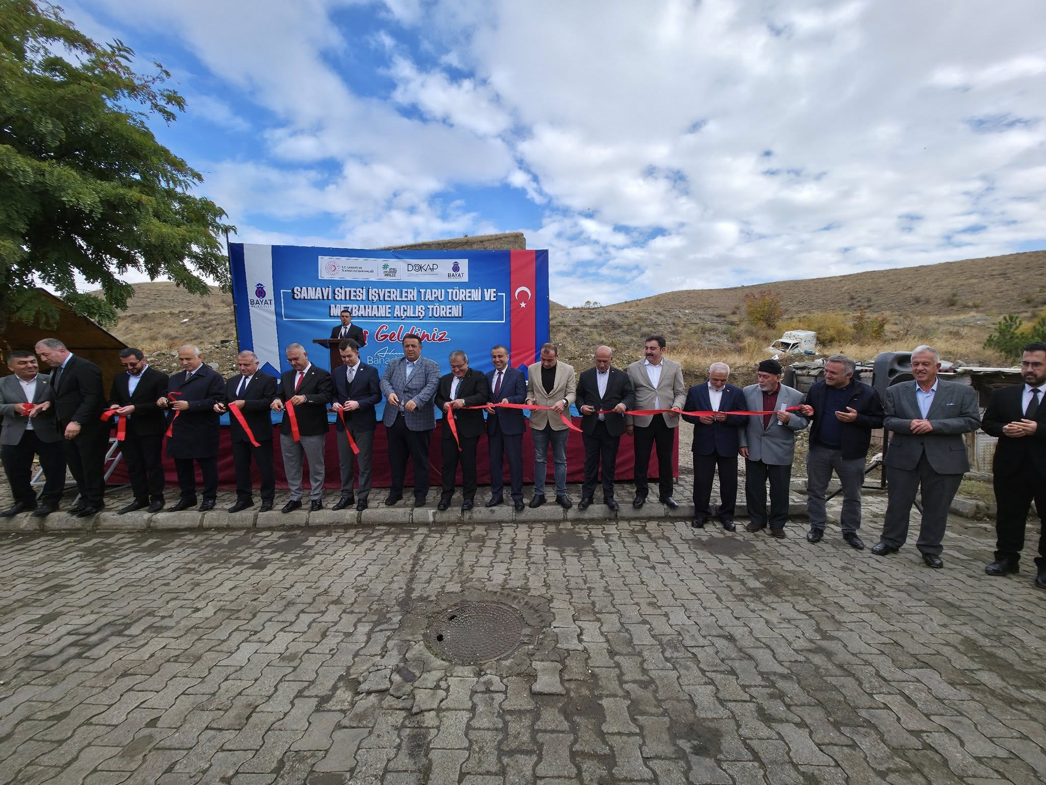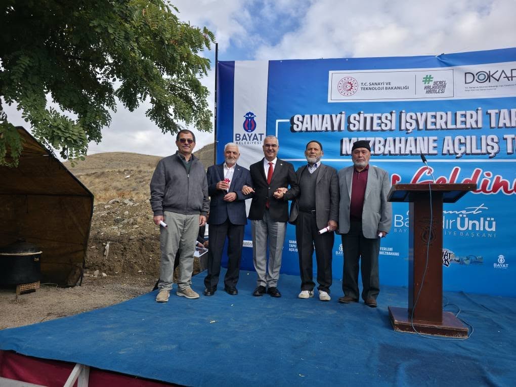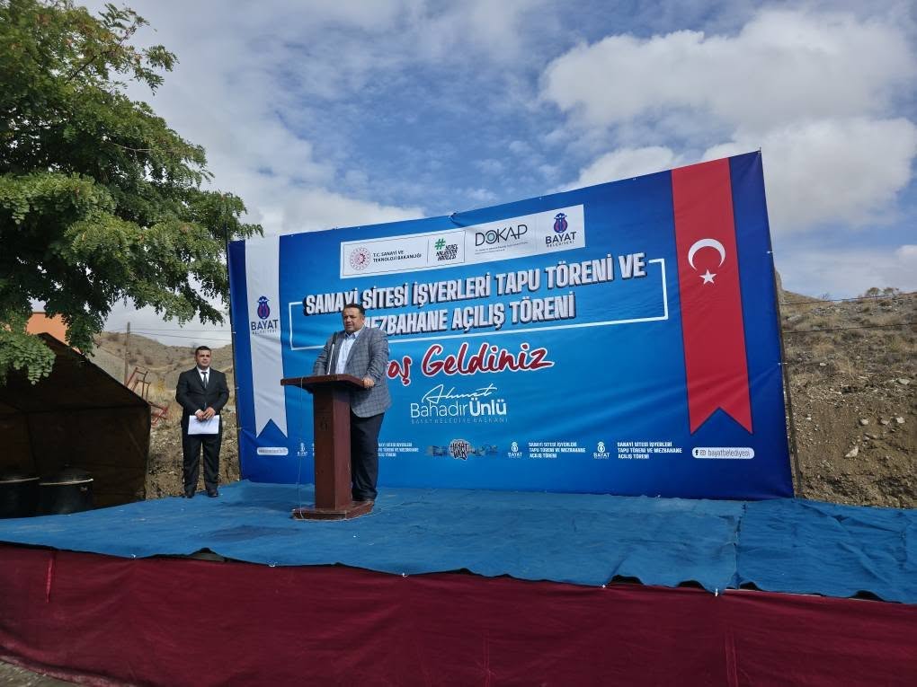 Sanayi Sitesi İşyerleri Tapu Teslim Töreni ve Mezbahane Açılış Törenimizi, Çorum Milletvekillerimiz Sayın Av. Yusuf Ahlatcı ve Sayın Av. Oğuzhan Kaya, AK Parti İl Başkanımız Sayın Yakup Alar, Bayat Kaymakamımız Sayın Kerem Yüce, Belediye Başkanımız Sayın Ahmet Bahadır Ünlü, İskilip Belediye Başkanımız Sayın İsmail Çizikci, AK Parti Bayat İlçe Başkanımız Sayın İbrahim Kaymaz, protokol üyeleri, esnaflarımız ve kıymetli vatandaşlarımızın katılımıyla büyük bir coşkuyla gerçekleştirdik.